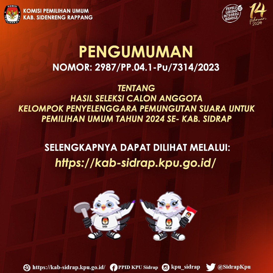 Berdasarkan Hasil Seleksi Calon Anggota Kelompok Penyelenggara Pemungutan Suara untuk Pemilu Tahun 2024,